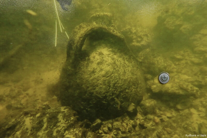 A co z mostem przez jezioro? W latach dwudziestych XX wieku przy niskim stanie wody widoczne były jeszcze jego dębowe pale. Relikty mostu badali płetwonurkowie w latach 1976 i 1982. Stwierdzono wtedy, że dębowe pale miały średnicę od 30 do 40 cm oraz długość sięgającą 15 m. Odkryto także spoczywającą na dnie jeziora łódź dłubankę.